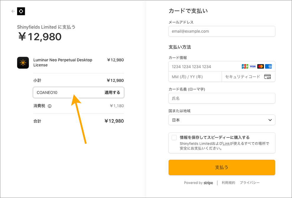 プロモーションコードの適用の仕方はこちら。