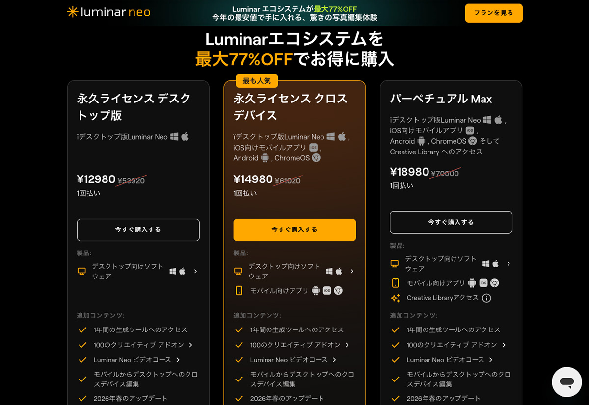 Luminar Neoのプランは3つ。